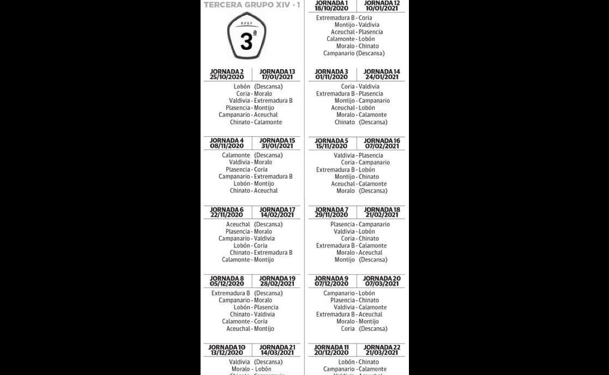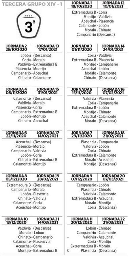 El grupo XIV de Tercera División ya conoce los calendarios de sus dos subgrupos. La liga regular arrancará el 18 de octubre y se alargará ... hasta el 21 de marzo a través de 22 jornadas.