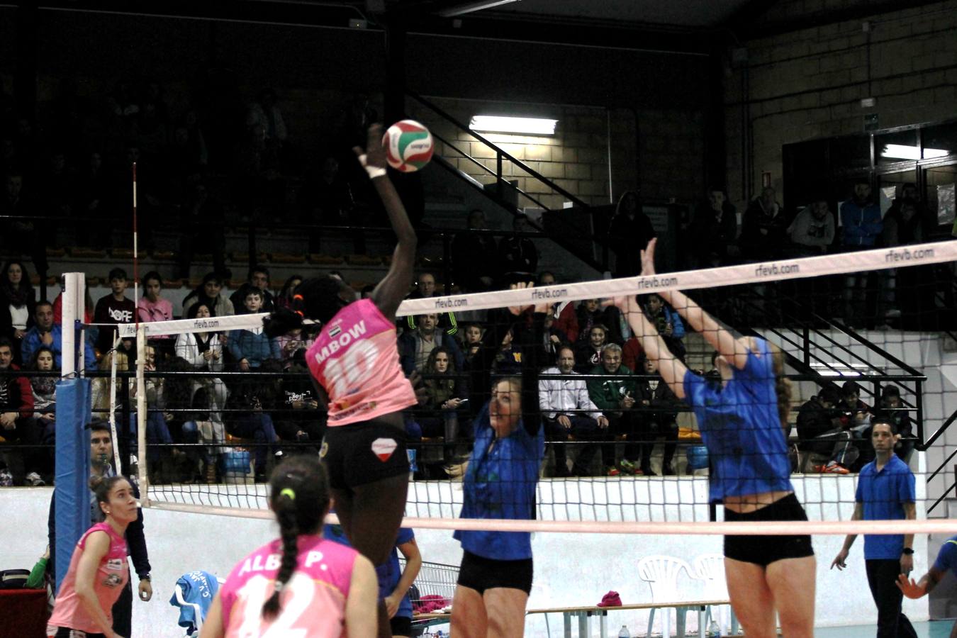 El conjunto extremeño, liderado por una inconmensurable Maguette Mbow, máxima anotadora de su equipo (16 puntos), fue de menos a más, llegó a mandar en el marcador por 2 juegos a uno, e incluso tuvo el coraje de sobreponerse a la expulsión de su entrenador, Adolfo Gómez, en el cuarto set, con 4-9 en el electrónico, para llegar incluso a llevar la iniciativa en el electrónico.