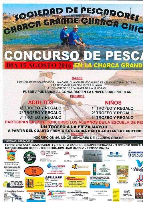 Arroyo de la Luz celebra el 15 de agosto el Concurso de Pesca en La Charca Grande que se llevará a cabo de 8.00 ... a 12.00 horas.