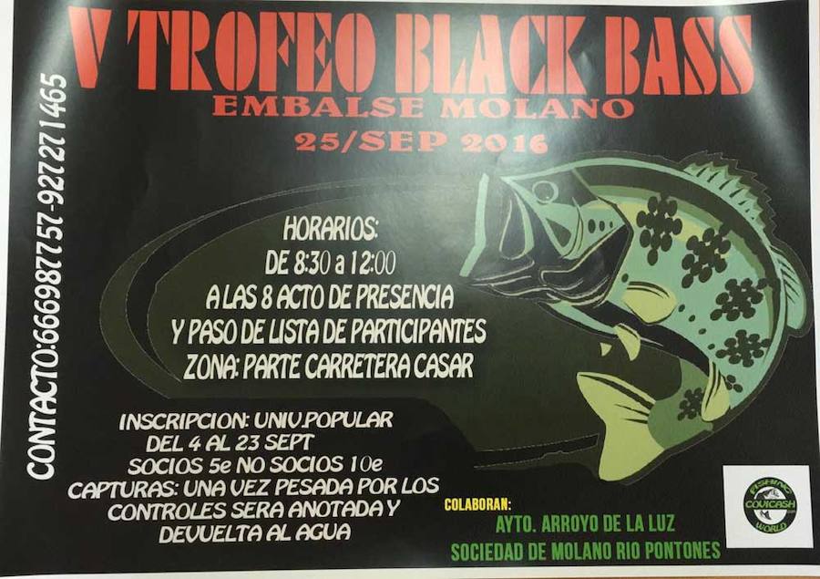 La Sociedad de Pescadores Embalse Molano Río Pontones de Arroyo de la Luz ha convocado el V Trofeo de Black Bass, Embalse Molano, para el ... domingo 25 de septiembre de 2016.