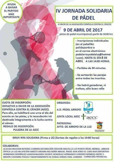 Esta jornada es organizada por la Asociación Deportiva Pádel Arroyo, con la colaboración de la Junta Local de la AECC y el Ayuntamiento de Arroyo de la Luz.