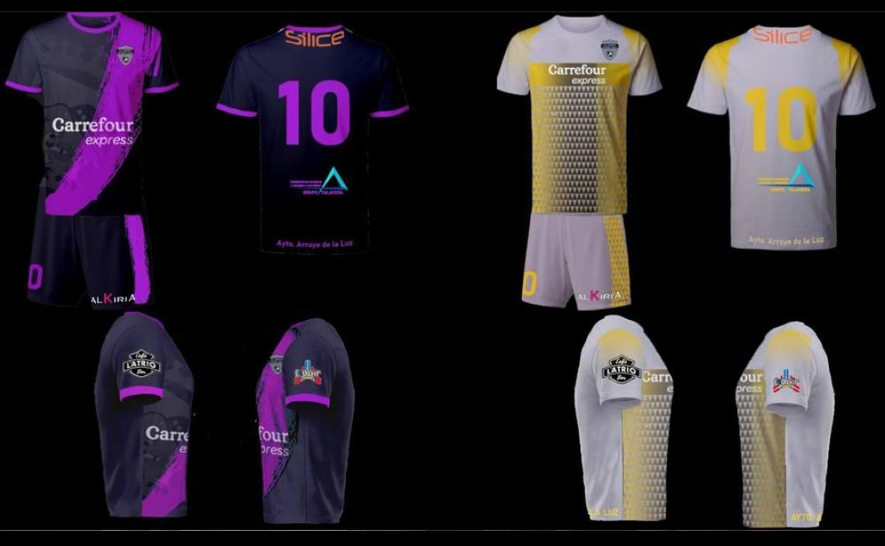 En las mismas, aparte del escudo del club, lucirán los nombres de varias empresas locales que les patrocinarán; Carrefour Express, Valkiria, Café L´Atrio, Grupo Talavera, Feduvir y el Ayuntamiento de Arroyo de la Luz.