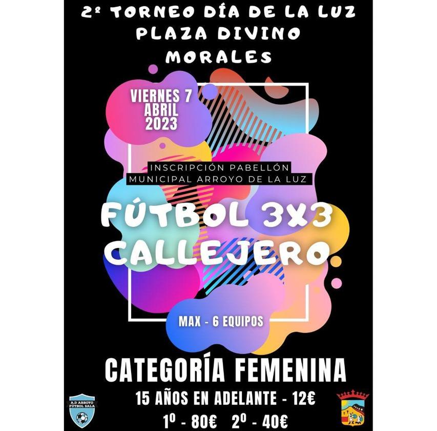 Este será el segundo año que se celebre el torneo y el primero en que habrá categoría femeninaEl día 7 del próximo mes de abril se celebrará la segunda edición del Torneo de fútbol Sala 3x3 Callejero Día de la Luz, organizado ... por el club Arroyo FS y el Ayuntamiento de la localidad, que tendrá lugar en la Plaza Divino Morales.