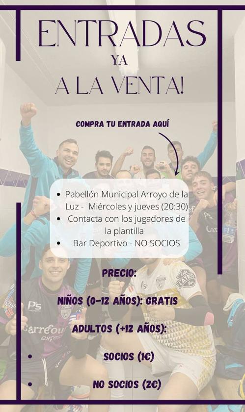 El partido de vuelta, que jugarán, como el de ida, frente al Arroyomolinos, se jugará el próximo sábado, día 20, en el Pabellón Polideportivo de Arroyo de la Luz.