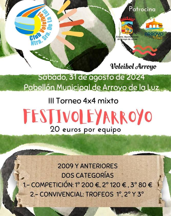 A esto se une la tercera edición del Festivoleyarroyo 4x4 mixto, otra de las citas que, aunque menos longeva, ya comienza a sonar como habitual en el verano deportivo arroyano y que se celebrará el próximo 31 de agosto en el Pabellón Polideportivo Municipal de la localidad.