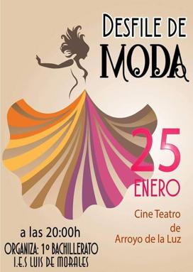 Mañana viernes, 25 de enero, se celebrará el tradicional desfile de moda de los alumnos de primero de bachillerato del Instituto Luis de Morales, con ... el objetivo de recaudar fondos económicos para financiar el viaje de fin de curso. Comenzará a las 20.00 horas en el Cine-Teatro Municipal.