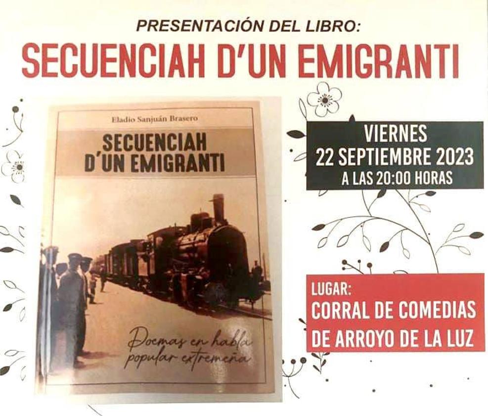 El próximo viernes, día 22 de junio, actividad con la que finaliza del todo el programa de eventos de las Ferias y Fiestas de Septiembre, ... se presentará en Arroyo de la Luz el libro 'Secuenciah d´un emigranti', del escritor Eladio Sanjuán.