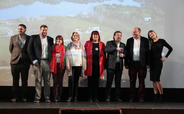 Representantes de la familia Enciso, junto al presidente de la Junta, Guillermo Fernández Vara, y la alcaldesa arroyana, Isabel Molano, explicaron ayer públicamente el proyecto que supondrá la generación de cerca de 300 empleos solo por su aprovechamiento agrícola.