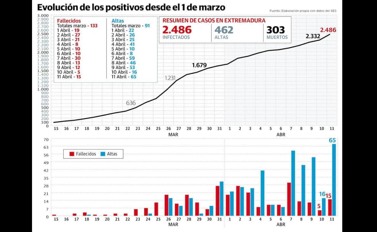 Se han notificado 65 altas, la mayor cifra de curados registrados en los informes diarios desde que comenzó la pandemia | Todas las áreas de salud salvo Llerena-Zafra registran algún fallecido