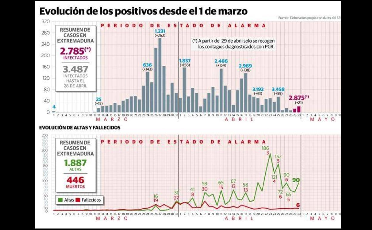 Mérida tiene 230 positivos, como el día anterior. Hay 31 ingresados, siete en UCI. Sigue con 28 víctimas y sube a 222 pacientes curados tras sumar veinte.