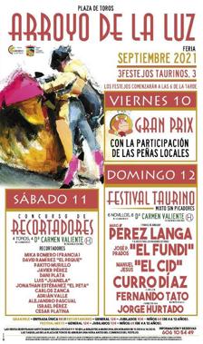 El domingo 12 de septiembre, Festival Taurino mixto sin picadores, con 6 novillos de la ganadería de doña Carmen Valiente, para el rejoneador Mario Pérez Landa (un novillo) y el resto para los diestros José P. Prados 'El Fundi', Manuel Jesús 'El Cid', Curro Díaz, el novillero arroyano Fernando Tato y un becerro para Jorge Hurtado.