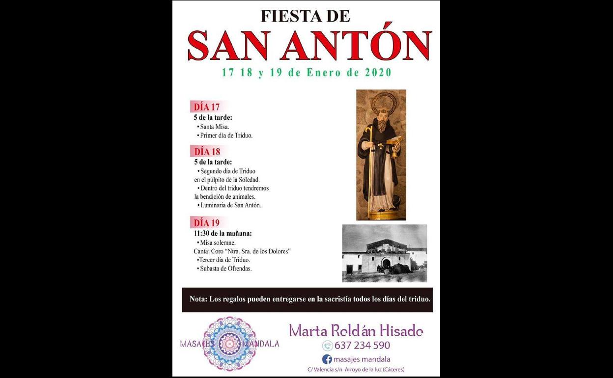 Al igual que todos los años por estas fechas, el próximo fin de semana, en Arroyo de la Luz, tendrá lugar la celebración de las ... fiestas de San Antón. Los actos comenzarán el próximo viernes, día 17 de enero, y finalizarán el domingo, 19 de enero.