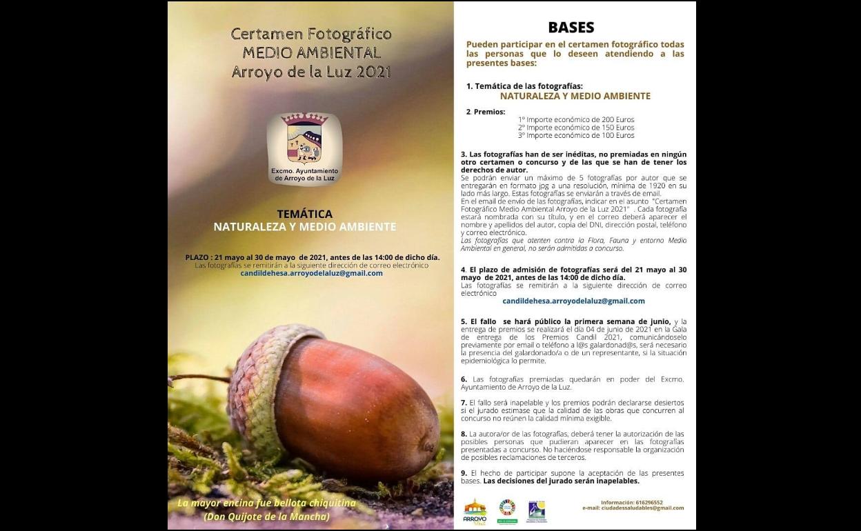 El Ayuntamiento de Arroyo de la Luz ha organizado el Certamen Fotográfico Medio Ambiental Arroyo de la Luz 2021, en el que pueden participar todas ... las personas que lo deseen.