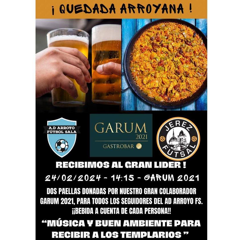 Con el objetivo de pasar una agradable día juntos, el Garum 2021, colaborador del club arroyano, ha donado dos paellas para todos los seguidores del Arroyo FS. Así, antes del encuentro, que comenzará a las 16.30 horas, la afición arroyana se dará cita en el Garum para degustar las dos ricas paellas que se cocinarán para la ocasión.