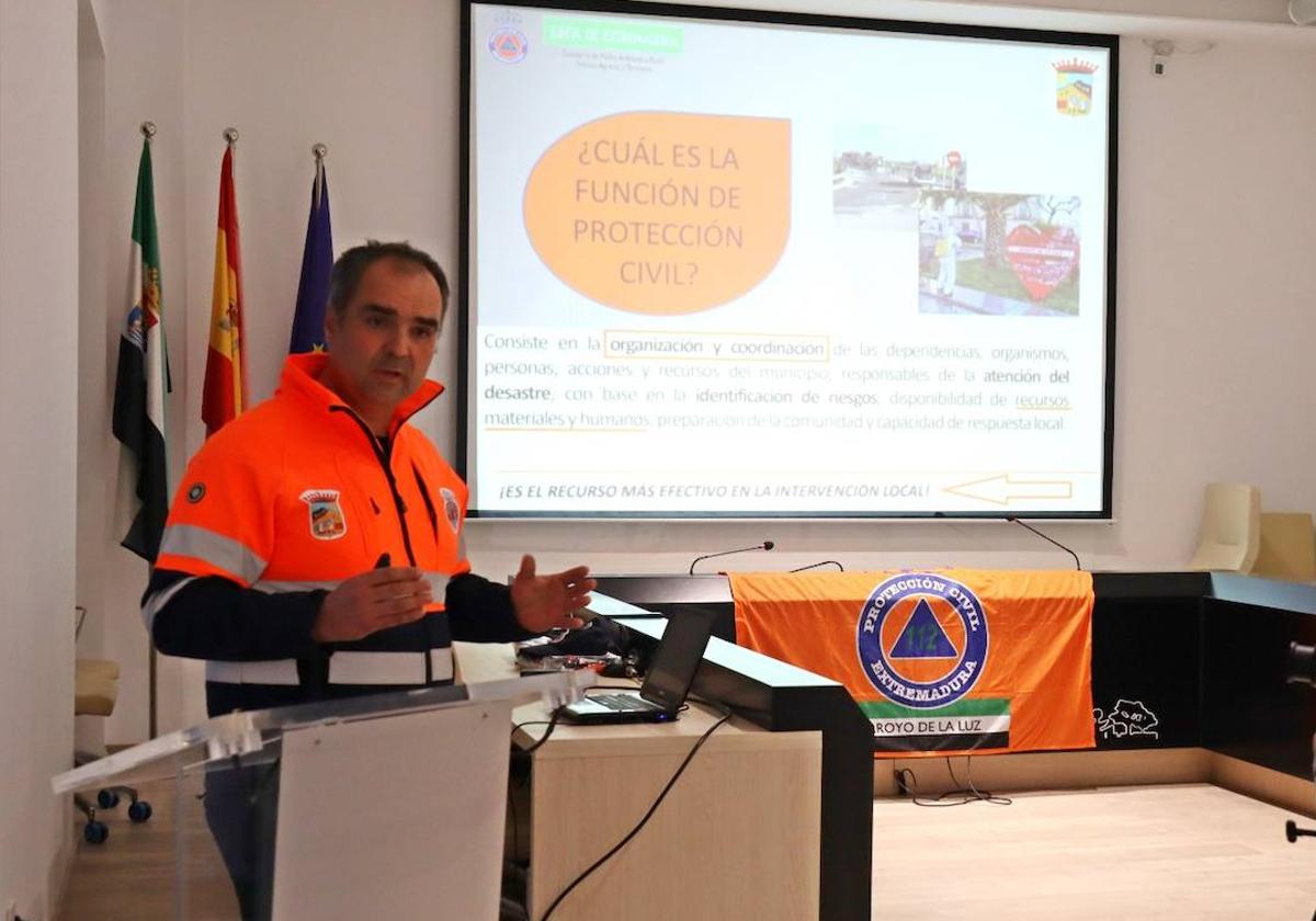 Manuel Berrocal Mateos, coordinador de la Agrupación Local de Voluntarios de Protección Civil de Arroyo de la Luz, da a conocer la agrupación y la labor que llevan a cabo desde la misma.