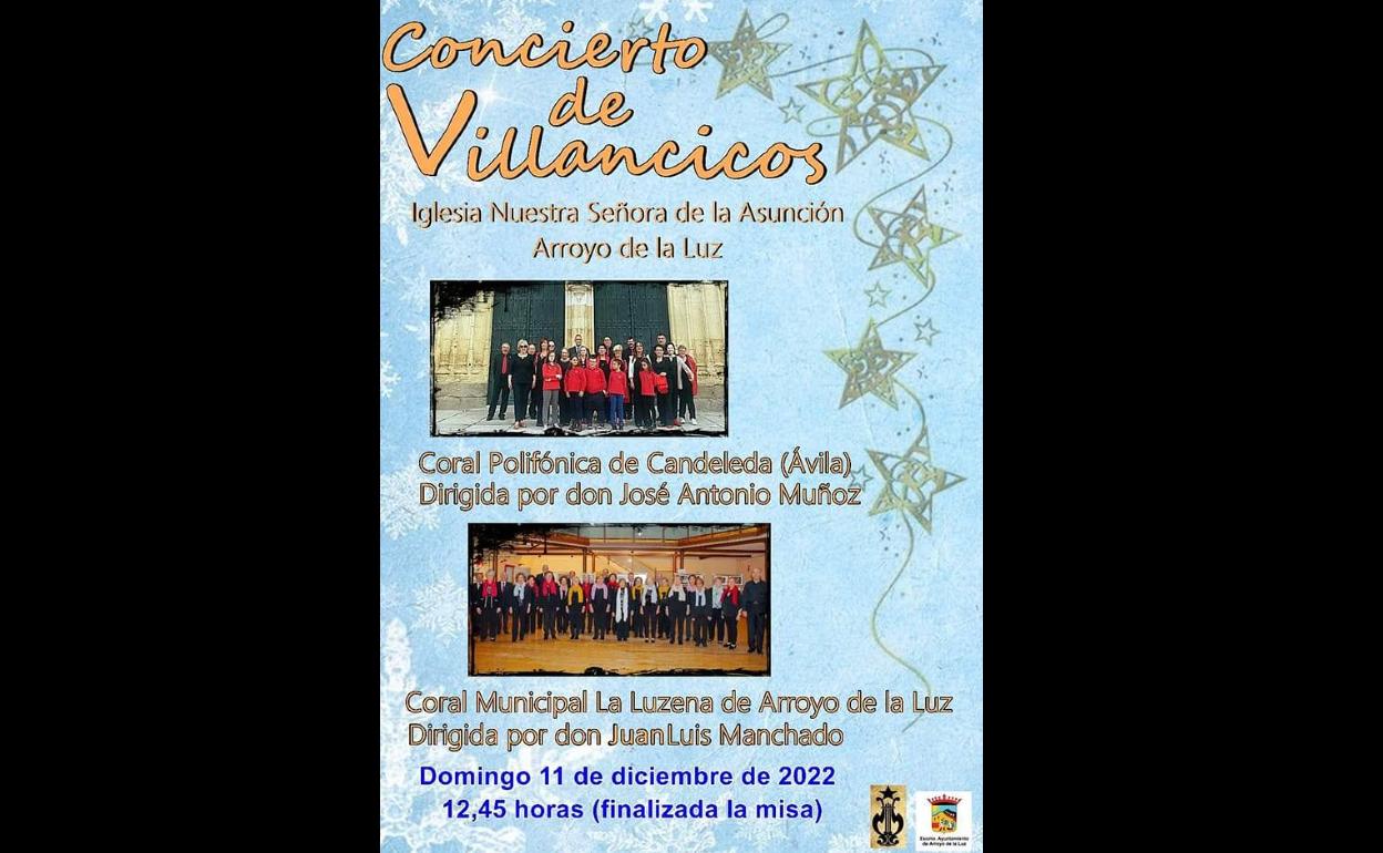 El próximo domingo, día 11 de diciembre, se celebrará un Concierto de Villancicos en la Iglesia Nuestra Señora de la Asunción, de Arroyo de la ... Luz, una de las actividades que componen el programa de actos para las fechas navideñas, organizado por el Ayuntamiento de la localidad.