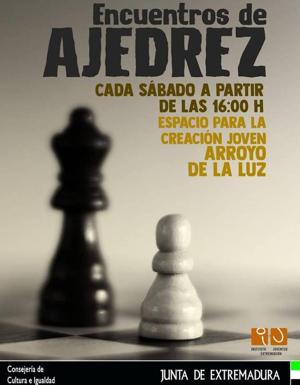 El Espacio para la Creación Joven de Arroyo de la Luz vuelve a acoger los Encuentros de Ajedrez. En esta ocasión tendrán lugar durante las ... tardes de los sábados, a partir de las 16:00 horas, en las instalaciones del ECJ. A dichos encuentros podrán asistir todos aquellos jóvenes que lo deseen.