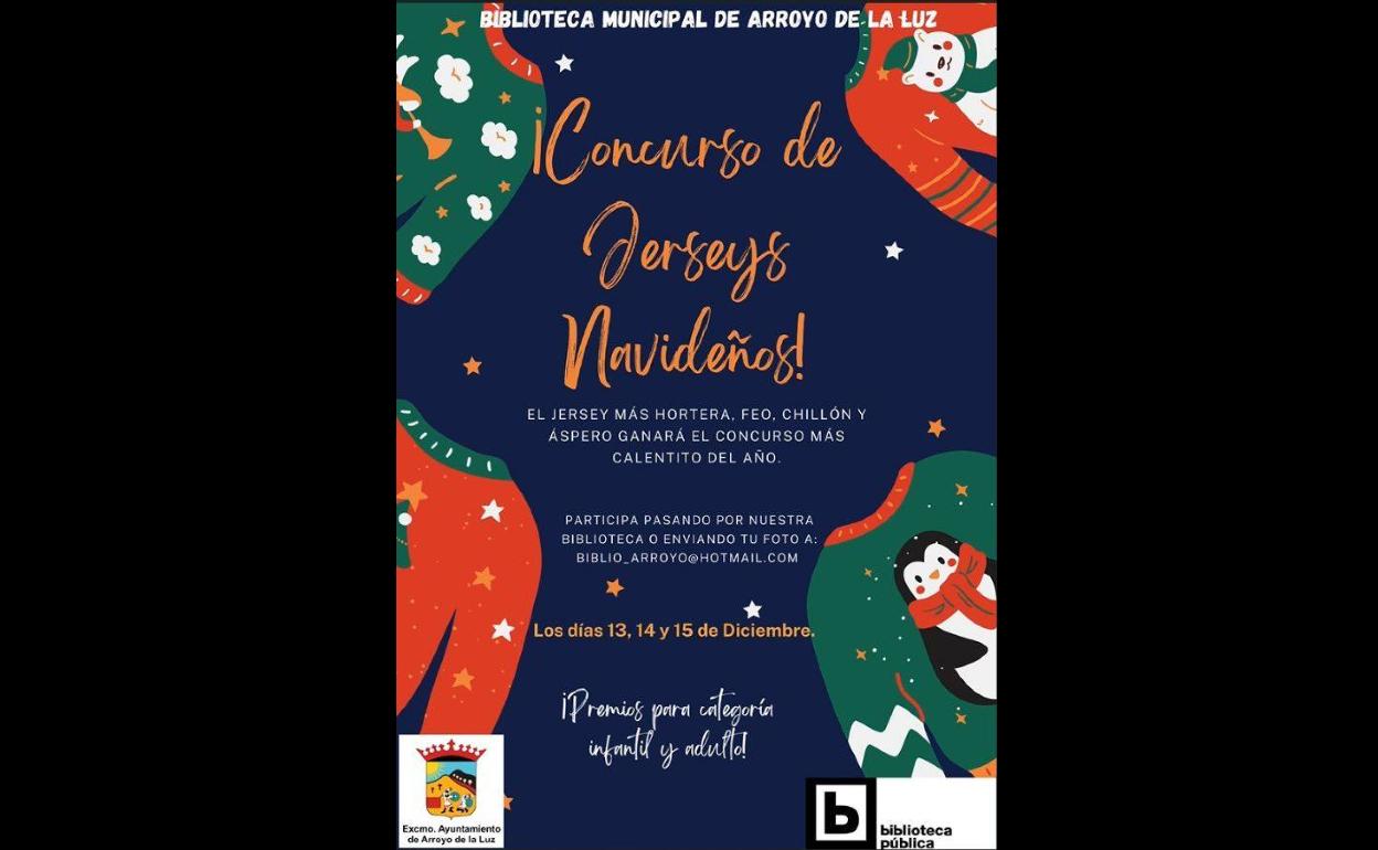 Entre las diferentes propuestas, el Ayuntamiento arroyano, a través de su Biblioteca Municipal ha organizado la primera edición del concurso de 'Jerséis Navideños', con motivo de la conmemoración del Día del Jersey Navideño Feo, que se celebra el 17 de diciembre, en colaboración con el proyecto Diviértete.