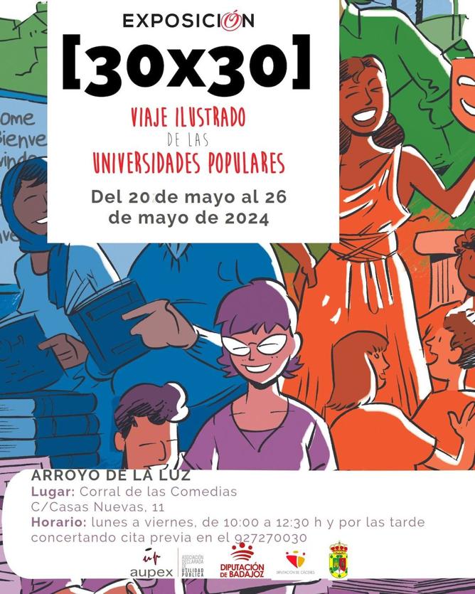 Con motivo del 30 Aniversario de la Asociación de Universidades Populares de Extremadura se ha puesto en marcha la exposición itinerante '(30 x 30) Viaje ... ilustrado de las Universidades Populares) que comenzó en el año 2022, año del aniversario, y continúa viajando por diferentes localidades.