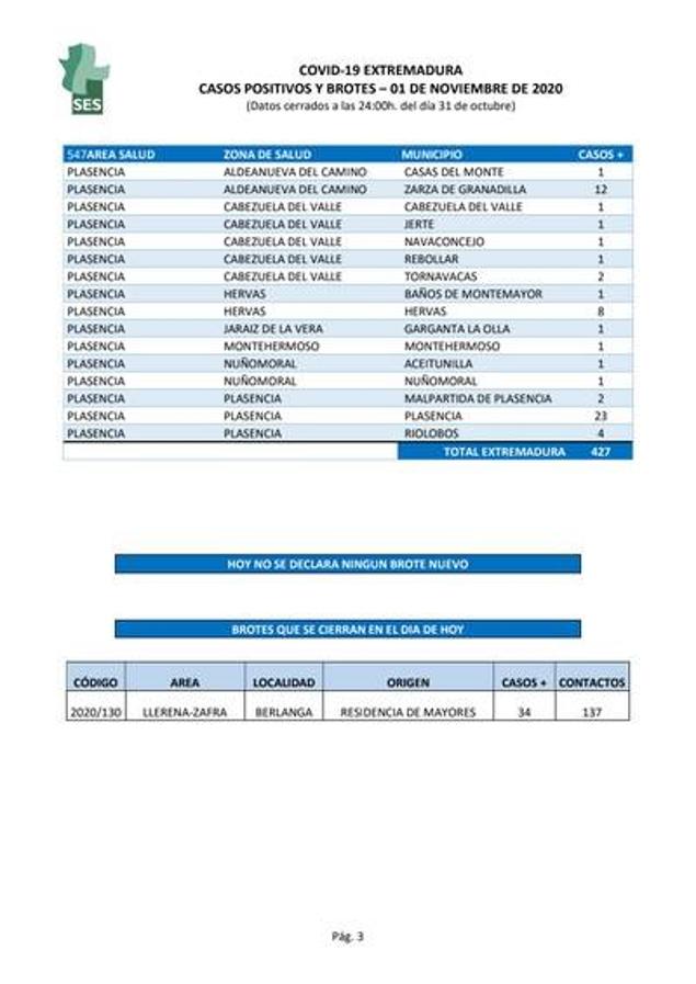(Datos cerrados a las 24.00 horas del 31 de octubre)