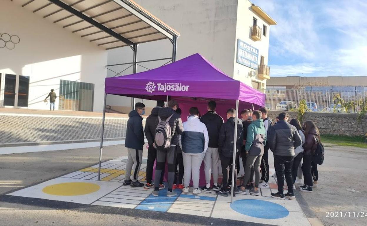 También estuvo presente un punto violeta de la Mancomunidad Tajo-Salor en el patio del centro con el que se informó y se resolvieron todo tipo de dudas a los alumnos que se acercaron.