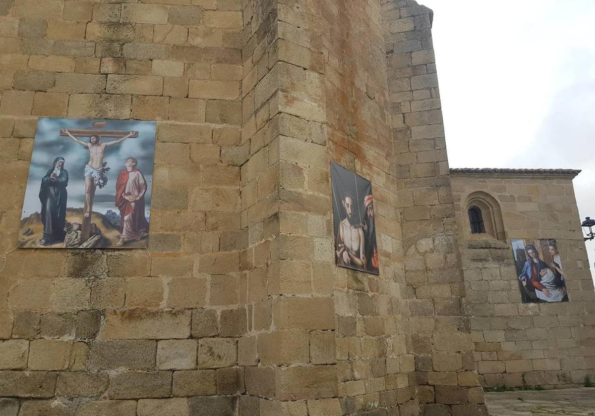 Los grandes lienzos han vuelto a colocarse en la fachada de la iglesia mientras que los cuadros se preparan para salir por primera vez de la localidad