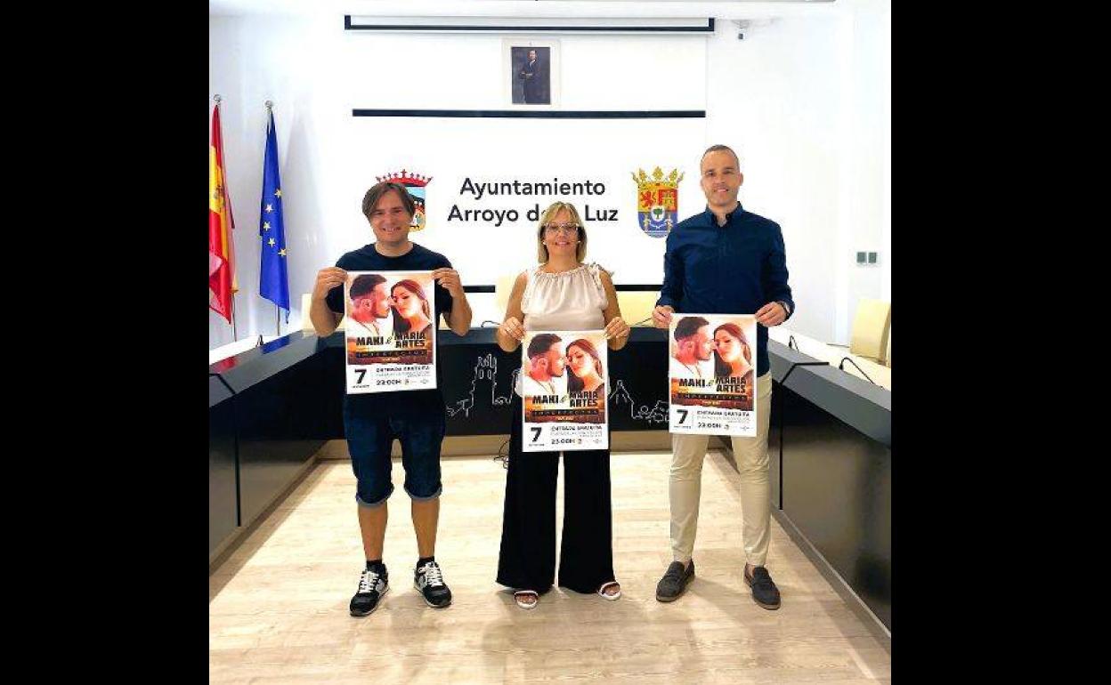 Durante la mañana de hoy jueves, día 1 de septiembre, ha sido presentado, en el Salón de Plenos del Ayuntamiento, el concierto de 'Maki y ... María Artés'. La presentación ha sido llevada a cabo por el alcalde del Ayuntamiento arroyano Carlos Caro, la concejala de Educación, Mercedes Pérez y el promotor de World Tour Eventos, Ángel Carrero.