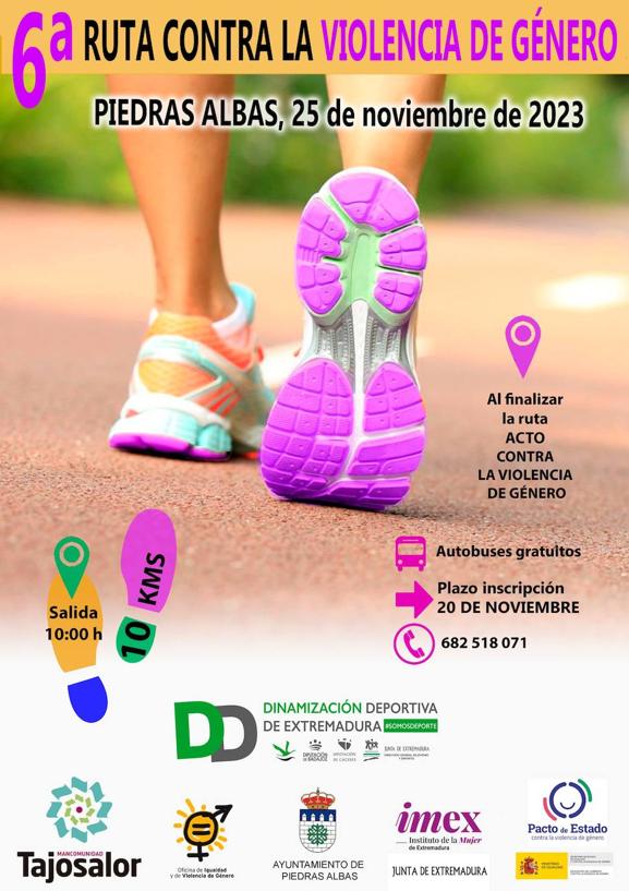 El próximo 25 de noviembre se llevará a cabo la sexta Ruta Contra la Violencia de Género de la Mancomunidad Tajo Salor. Este año se ... celebrará en la localidad de Piedras Albas, donde se celebrará también el acto institucional Contra la Violencia de Género.