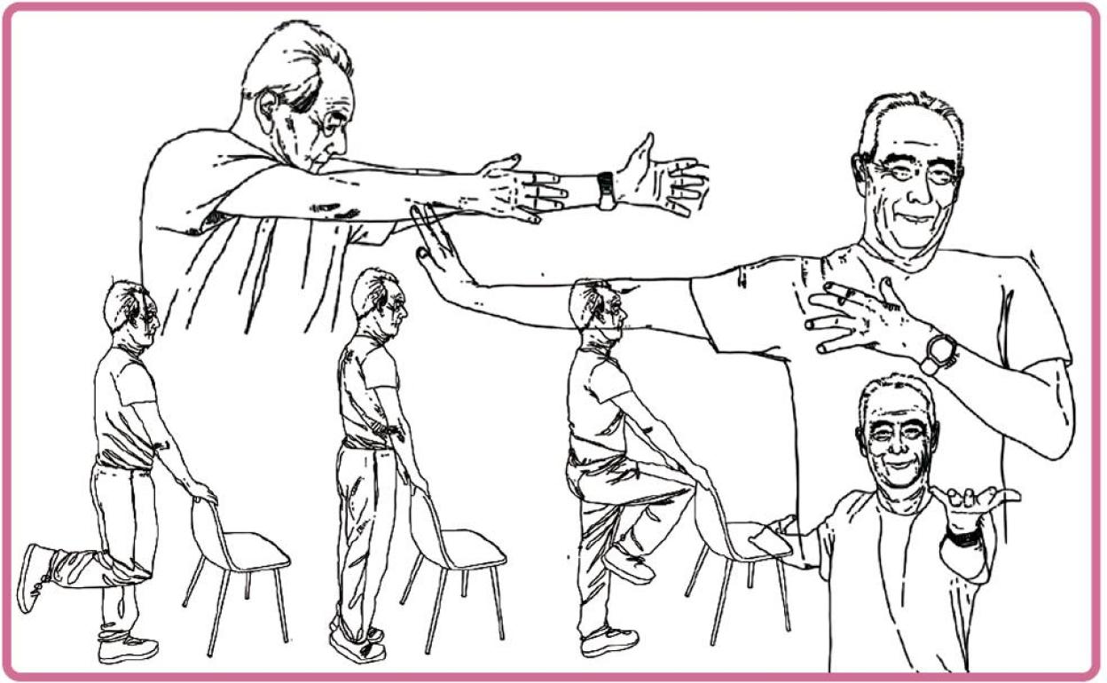 Un ejercicio que también es muy recomendable pero que no todos los mayores lo pueden hacer por sus condiciones físicas es caminar hacia atrás. «Es buenísimo. Se puede hacer en el pasillo de casa, apoyándonos siempre en la pared. Eso sí, fuera alfombras o cualquier otro objeto con el que nos podamos tropezar. Lo ideal es practicarlo en pareja porque, además de ser más entretenido, la otra persona puede vigilar que no nos caigamos», explica David Rodríguez.