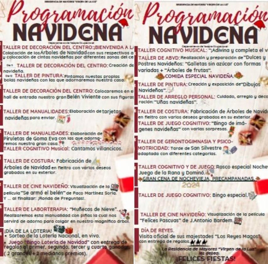 También dentro de la Residencia de Mayores Virgen de la Luz están celebrando la navidad con un nutrido y atractivo cargado de actividades navideñas para alegrar la Navidad de los más mayores.