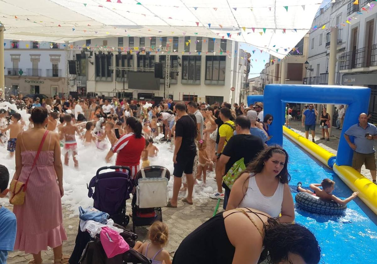Multitudinaria fiesta del agua y de la espuma en Arroyo de la Luz