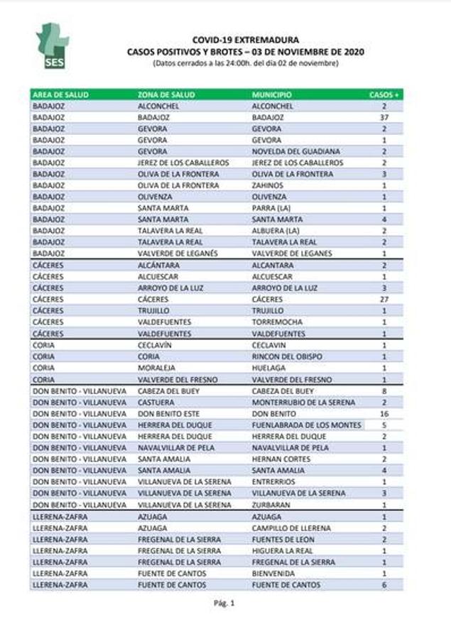¿Qué municipios extremeños comunican casos positivos este martes?