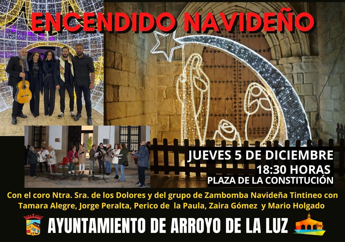 Mañana jueves, día 5 de diciembre, Arroyo de la Luz dará la bienvenida oficial a la Navidad con el tradicional acto de Encendido de la iluminación navideña, que se llevará a cabo en la Plaza de la Constitución, a las 18.30 horas.