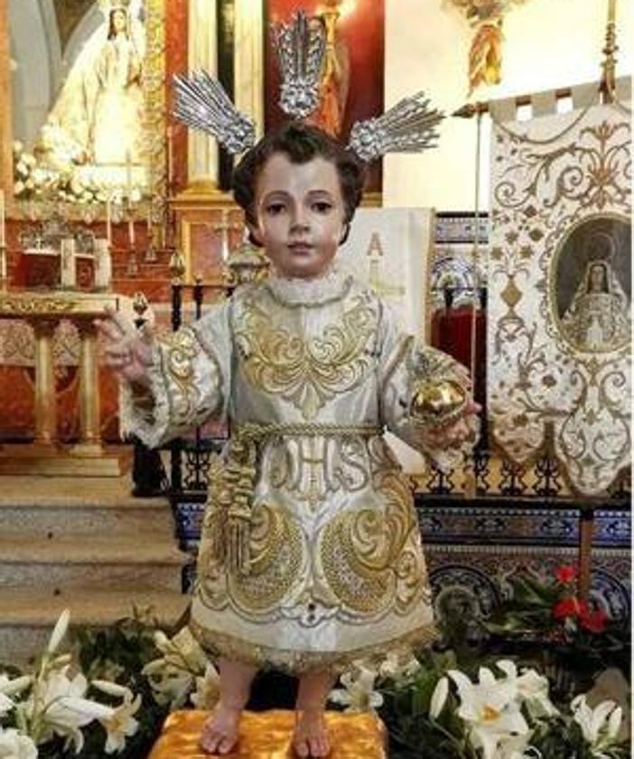 Bajaba el Niño, bajaba, por la Corredera engalanada a hombros de niños de primera comunión sobre unas angarillas sencillas de madera que algunos padres procuraban ... estabilizar, abriendo el camino a la imagen de la Virgen de la Luz. Era el primer jueves pascual, 13 de abril, al anochecer.