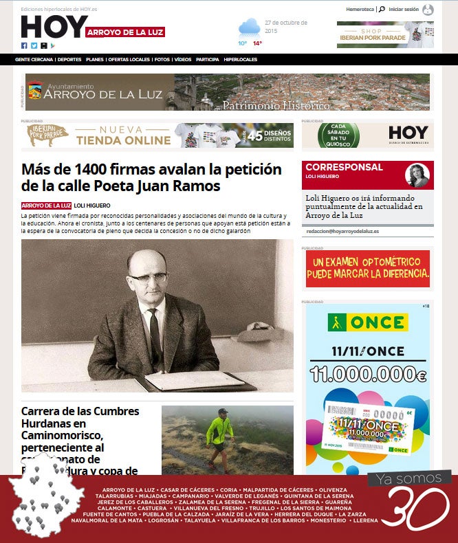 La Red de Hiperlocales del Diario HOY se encuentra en pleno proceso de transformación de su edición digital. De esta forma, el conjunto de los ... 30 medios de comunicación, centrados en otras tantas localidades extremeñas de entre 2.000 y 20.000 habitantes, tendrán un diseño en página web similar al de HOY.es.