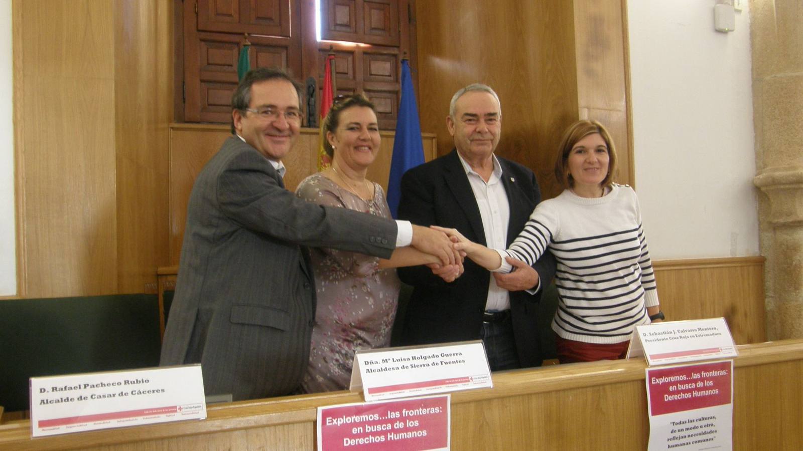 Todos podemos ser migrantes en algún momento de nuestra vida, declaró la alcaldesa de Sierra de Fuentes, Mª Luisa Holgado, antes de la firma del acuerdo por la construcción de la ciudadanía global junto con Cruz Roja Extremadura y otros dos municipios, Casar de Cáceres y Arroyo de la Luz. Un acuerdo que reafirma la voluntad de todas las partes de trabajar en favor de la promoción de los derechos humanos, en especial de la población migrante y que se enmarca en el proyecto de sensibilización.