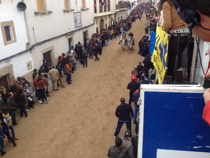 Numerosos jinetes y amazonas a lomos de sus caballos galopan a gran velocidad por la calle Corredera, lo que en ocasiones provoca momentos de cierta peligrosidad para el público.