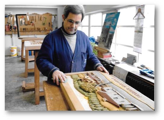 Ángel Caballero nació en Arroyo de la Luz y reside en el País Vasco, donde aprendió este oficio que practica por afición en sus ratos libres. En el año 2011 donó al Ayuntamiento de Arroyo de la Luz el escudo de la localidad en una preciosa talla que puede admirarse desde entonces en la Oficina de Turismo.