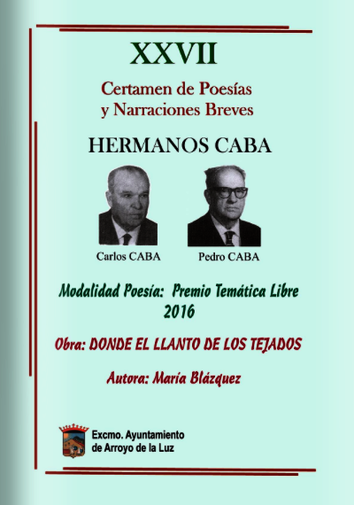 Tra haber sido leídos y analizados por el jurado y comprobando que cumplían con las bases del Certamen, el ganador del premio de poesía de temática libre ha sido para la obra Donde el llanto de los tejados de María Blázquez (Badajoz).