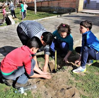 Los escolares del CEIP Nuestra Señora de la Luz reforestan el centro escolar