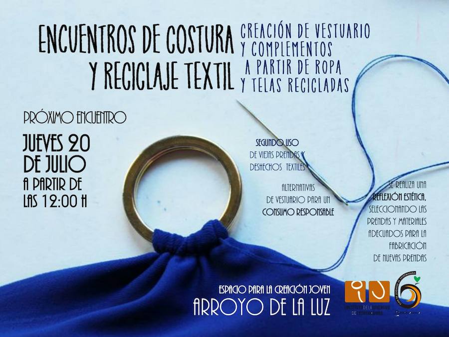 El Espacio de Creación Joven de Arroyo de la Luz desarrollará el jueves 20 de julio un Encuentro de Costura y Reciclaje Textil para la ... creación de vestuario y complementos a partir de ropa y telas recicladas.