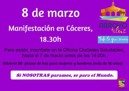 El próximo 8 de marzo tendrá lugar en Cáceres a las 18:30 horas la manifestación con motivo del Día Internacional de la Mujer.