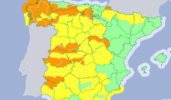 Atendiendo a la lluvia, el norte de Cáceres estará en alerta amarilla entre las 4:00 y las 00:00 por precipitación acumulada en 12 horas de 50 litros por metro cuadrado.