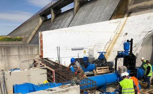Actualmente, se ha concluido ya la instalación de los conductos y las correspondientes válvulas y se ha remodelado el canal de descarga de los desagües de fondo. En breve, se instalarán los accionamientos mecánicos de las válvulas y se iniciarán sus pruebas de funcionamiento. De igual modo, y tal y como estaba previsto en el proyecto, ya ha sido instalada una conducción que, en caso necesario, posibilitará la regulación de un eventual caudal ecológico.