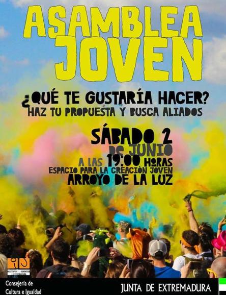 El próximo sábado día 2 de junio, a partir de las 19:00 horas, el ECJ de Arroyo de la Luz acogerá una asamblea para ... jóvenes de entre 14 y 35 años.