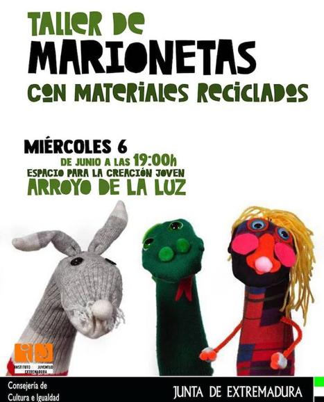Para la tarde de hoy, 6 de junio, han organizado un taller de marionetas con materiales reciclados. La actividad comenzará a las 19:00 horas y está destinada a jóvenes de entre 14 y 35 años. El taller tendrá lugar en las instalaciones del ECJ.