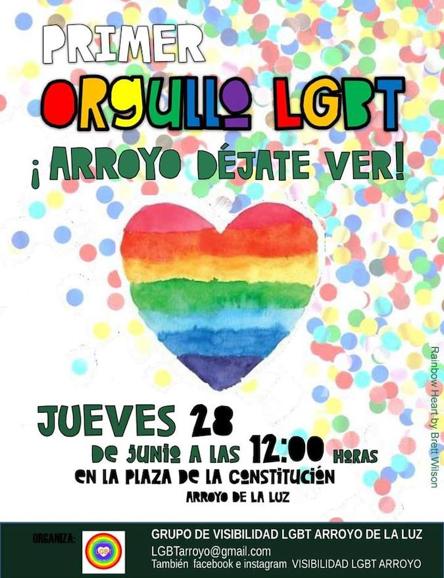 Este año, por primera vez, el grupo de visibilidad LGBT de Arroyo de la Luz, el primer grupo de visibilidad de la región, ha organizado el primer Día del Orgullo LGBT arroyano. Se reunirán mañana jueves día 28 en la Plaza de la Constitución a las 12:00 horas.