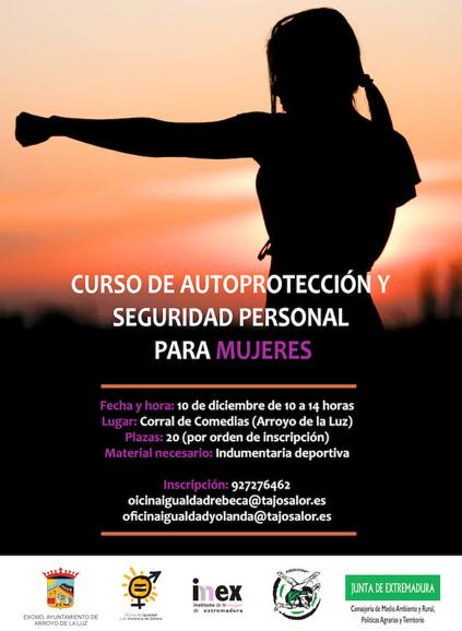 La Oficina de Igualdad y Violencia de Género de la Mancomunidad Tajo Salor ha organizado un taller de Autoprotección y Defensa Personal para Mujeres que ... será impartido por la Academia de Seguridad Pública de Extremadura y el Departamento de Defensa Personal Femenina de la Federación Extremeña de Lucha.