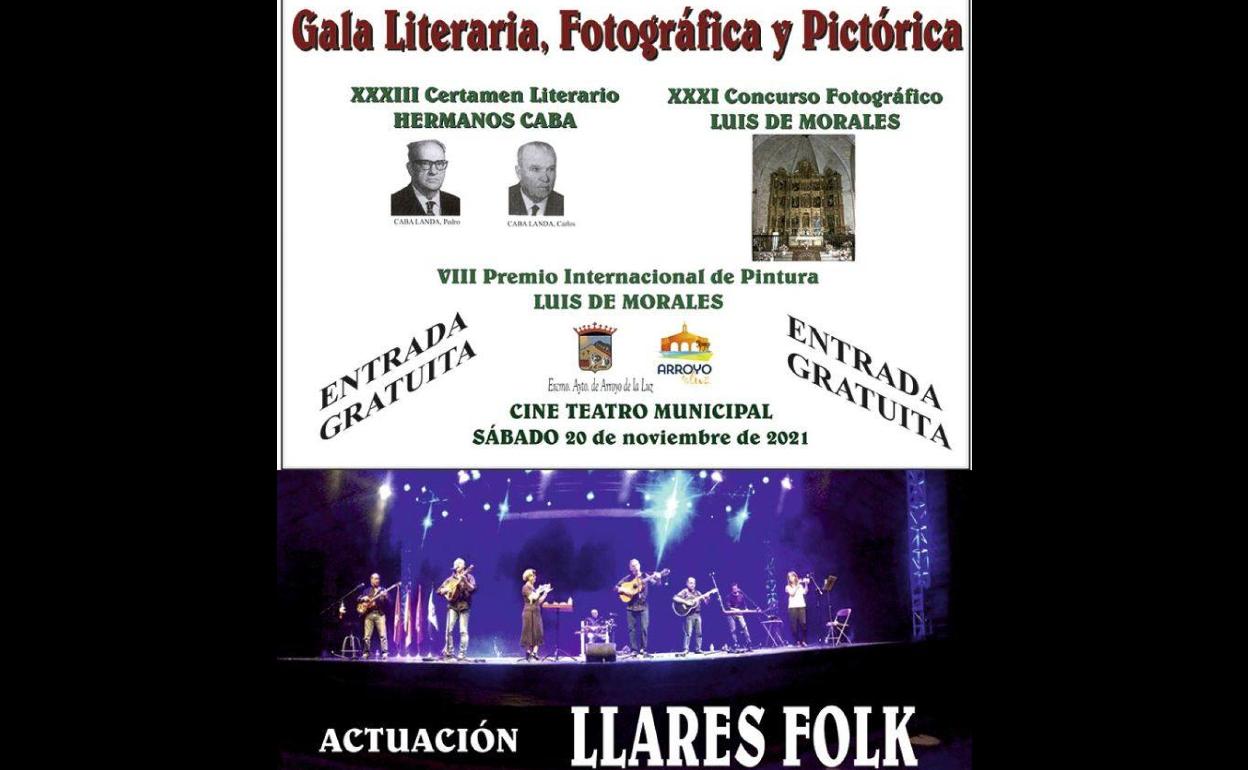 El Ayuntamiento de Arroyo de la Luz hará entrega de los premios a los ganadores del XXXIII Certamen de Poesías y Narraciones Breves 'Hermanos Caba'; ... del XXXI Concurso Fotográfico 'Luis de Morales' y del VIII Premio Internacional de Pintura 'Luis de Morales'.