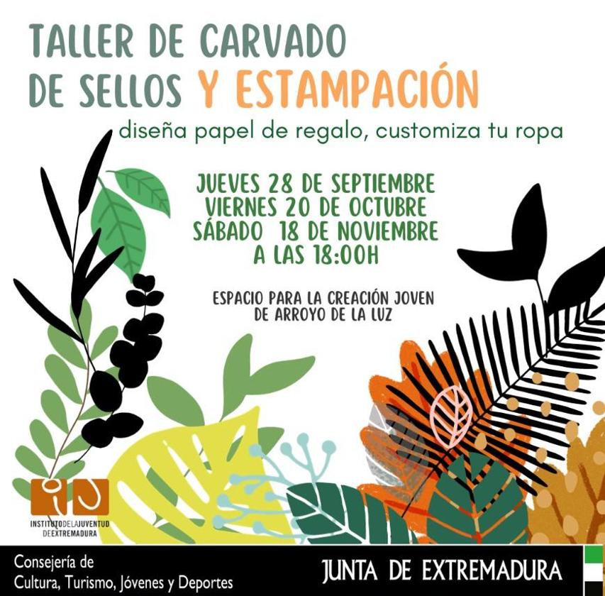 El Espacio para la Creación Joven de Arroyo de la Luz va a organizar una nueva sesión del taller de carvado de sellos y estampación ... hoy viernes 20 de octubre. Durante el mismo, los asistentes podrán diseñar su propio papel de regalo o customizar su ropa.